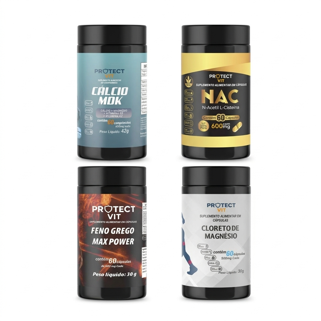 O Kit Saúde Completa Protect Vit foi desenvolvido para quem busca mais energia, fortalecimento do organismo e mais qualidade de vida. Ele reúne 4 suplementos essenciais que atuam juntos para oferecer suporte completo ao corpo: Ideal para quem quer cuidar da saúde de forma completa com produtos de qualidade e alta concentração.